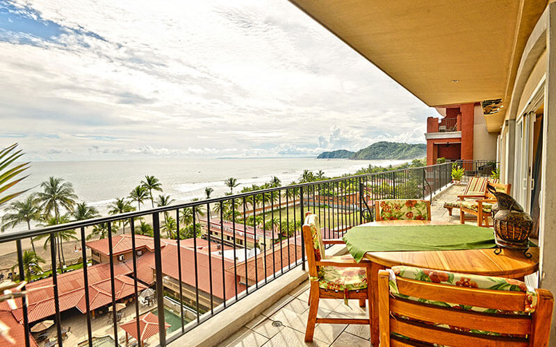 Each condo is available with 3 bedrooms and 3.5 bathrooms. It is the ultimate in luxury vacation experience in Costa Rica. The master suite includes a lavish bathroom with jacuzzi and walk-in shower. It also features a view of the resort below and the nearby bay.